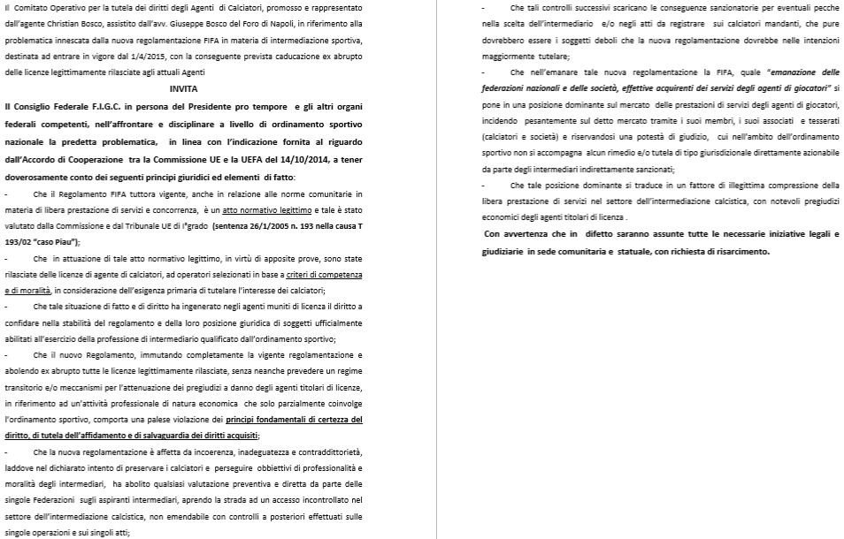 LA DIFFIDA AL CONSIGLIO FEDERALE FIGC