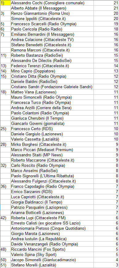 ROMA - Ultima classifica dell'anno per la rubrica Il Pronostico che dopo Inter-Lazio vi dà appuntamento alla vigilia di Lazio-Carpi: