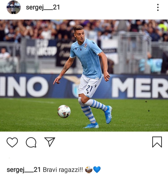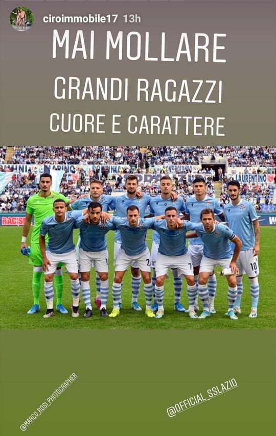 ROMA - Una partita incredibile, dopo essere andata sotto di 3 gol la Lazio è riuscita a pareggiare 3-3 segnando 3 gol nell'ultima parte di gara. Grande carattere da parte della squadra di Inzaghi, che con rabbia riesce a rimettere in parità una sfida che sembrava ormai persa. Immobile e Milinkovic su instagram esprimono la loro gioia per una rimonta insperata.