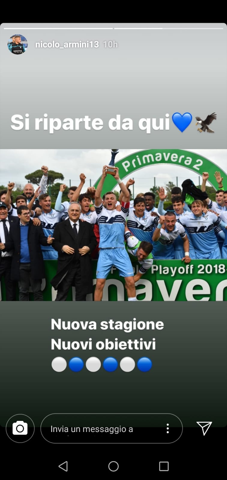 ROMA - Il giovane difensore della Lazio, Nicolò Armini, riparte dalla promozione nella massima divisione Primavera e sui social ha voluto ricordare quel momento magico della scorsa stagione. E non è stato l'unico, visto che il calciatore è stato anche fatto esordire in Serie A da Simone Inzaghi. Poi l'esperienza in Nazionale, all'Europeo Under-19 in Armenia, breve ma intensa.