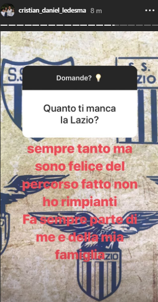 ROMA - La Lazio ti entra nel cuore e non ne esce più. Lo sa bene Cristian Ledesma che dopo aver vestito la maglia biancoceleste ed esserne stato capitano, continua ad essere il primo tifoso del club capitolino. Su Instagram, l'italo-argentino, ha risposto alle domande dei suoi followers denotando ancora una volta il suo attaccamento alla Lazio. Tra passato e futuro, ecco le sue risposte più significative: