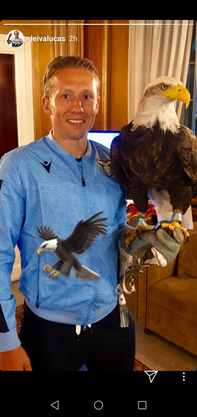 ROMA - Il centrocampista della Lazio, Lucas Leiva, sta vivendo il suo terzo ritiro in biancoceleste ed è ormai entrato nel cuore dei tifosi. Ma anche la Lazio sembra aver fatto breccia nel suo di cuore, visto che gli sta vivendo emozioni indescrivibili da protagonista. Durante l'incontro presso la Sala Consiliare di Auronzo di Cadore si è fatto immortalare insieme all'aquila Olimpia.