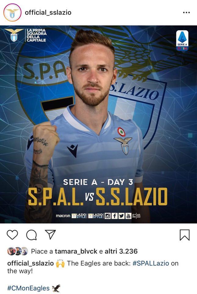 ROMA - Torna il campionato di Serie A dopo la sosta per le nazionali, la Lazio affronterà la Spal oggi alle 15 allo stadio Paolo Mazza di Ferrara. Un rientro che tutta la squadra sta vivendo con trepidazione e sui social sia la società che i calciatori si sono scatenati. Il club pubblicato un post sul proprio profilo Instagram ufficiale che recita: "Le aquile sono tornate".