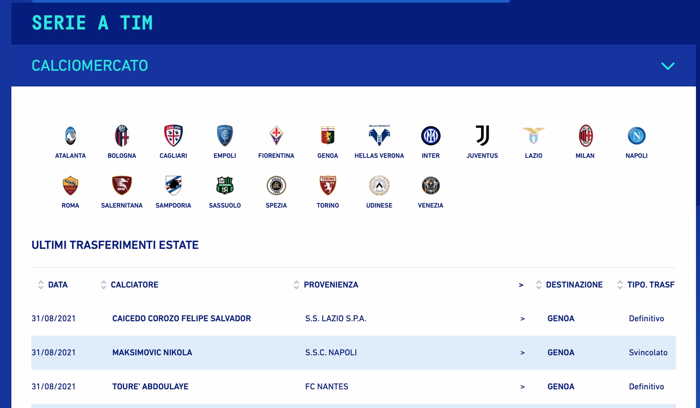 AGGIORNAMENTO 31 AGOSTO ORE 17:52 - Come si può vedere sulla sezione dedicata alla campagna trasferimenti sul sito ufficiale della Lega Serie A, il Genoa ha depositato il contratto di Felipe Caicedo. Trasferimento quindi ufficiale, in attesa dei comunicati.