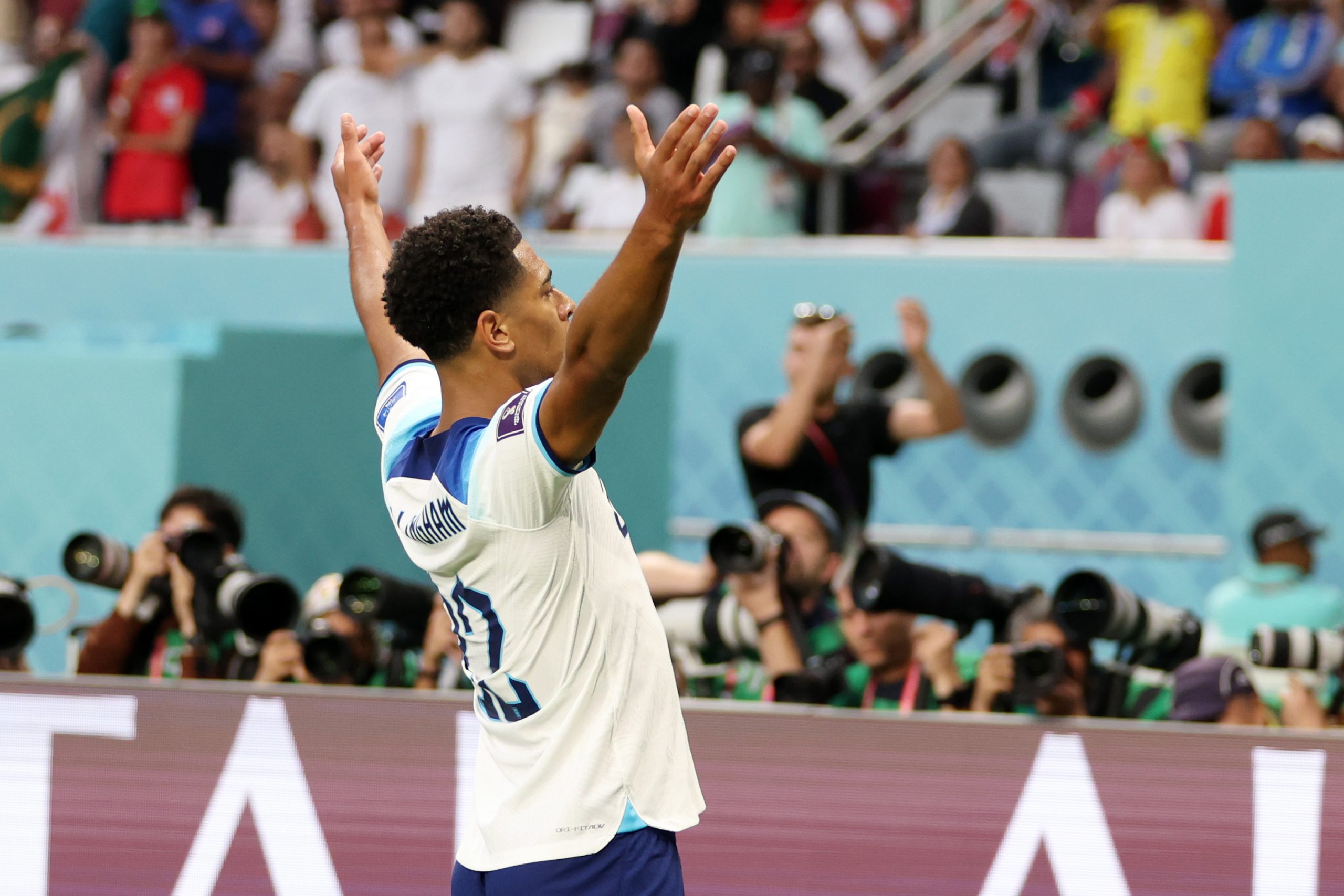 Seconda partita del torneo e già possibile candidata alla gara più pazza del torneo. Più di 25 minuti di recupero totali (14 nel primo, 13 nel secondo) infortuni e gol storici. Dopo una sosta di un quarto d'ora per il grave infortunio occorso a Beiranvad (portiere iraniano) la partita è stata presa, minuto dopo minuto, sempre di più in mano dalla formazione inglese. Sei gol totali, tre per tempo. Apre la festa del gol Jude Bellingham che, al 35°, con un preciso colpo di testa sfritta l'ottimo cross di Luke Shaw. Gol storico quello del centrocambista del Dortmund diventa il primo giocatore nato dopo il 2000 a segnare in un Mondiale. Dopo otto minuti arriva il raddoppio inglese: Saka raccoglie la sponda di testa di Maguire e con un sinistro al volo trafigge l'incolpevole Hossein. Primo del duplice fischio di Claus, esulta anche Sterling: piatto al volo su ottimo servizio di Kane e partita già virtualmente in ghiaccio.Gruppo B