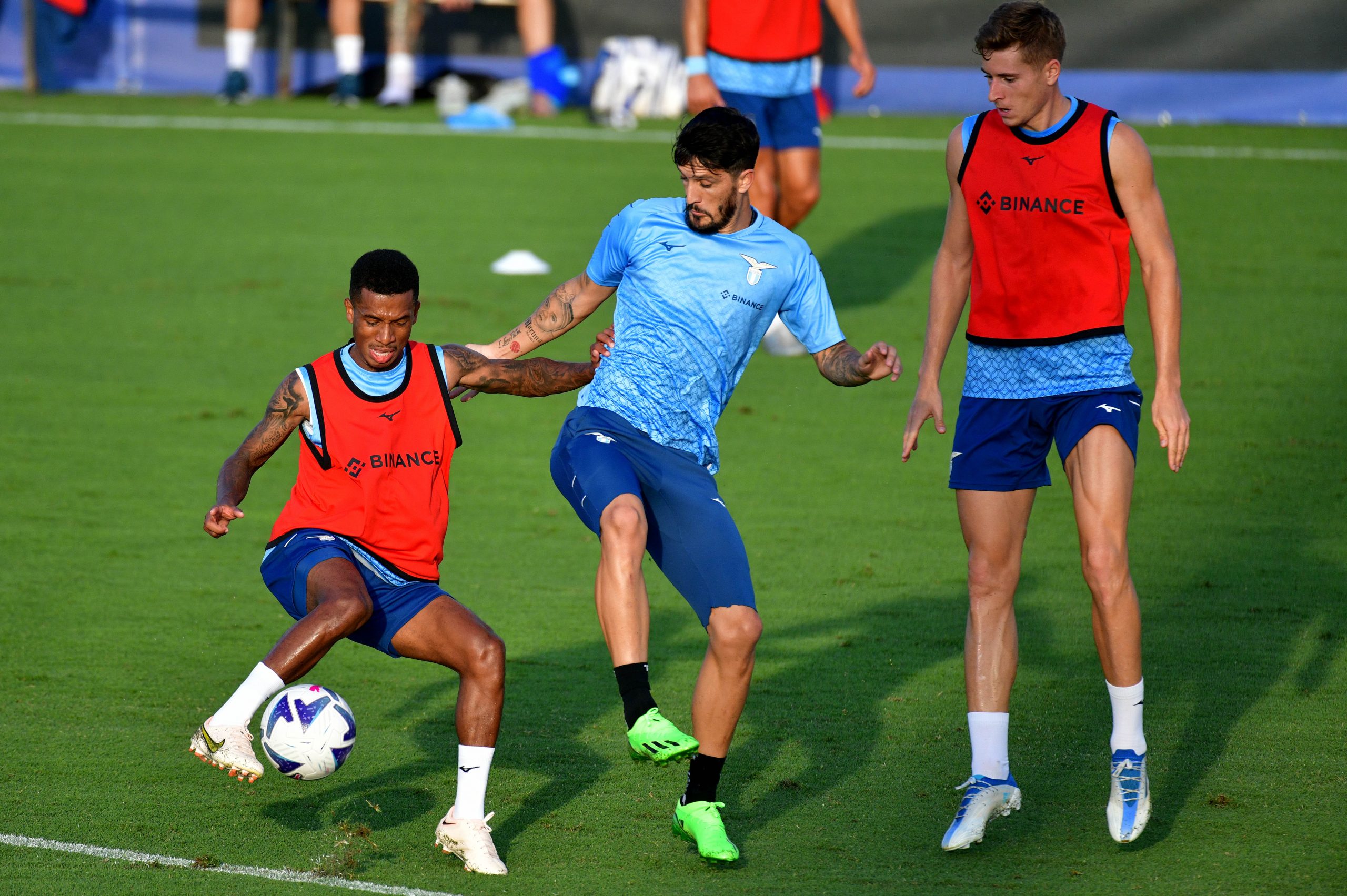 Seduta iniziata con dell'attivazione muscolare. Ancora niente tattica per gli uomini di Sarri che dopo la prima fase riscaldamento si sono dedicati a dei circuiti tecnici. Terza frazione dell'allenamento dedicata al possesso palla prima di una partitella a campo ridotto. Questa la suddivisione delle squadre:CELESTI: Maximiano; Bertini, Patric, Kamenovic, Radu; Pedro, Luis Alberto, Basic; Cancellieri.
