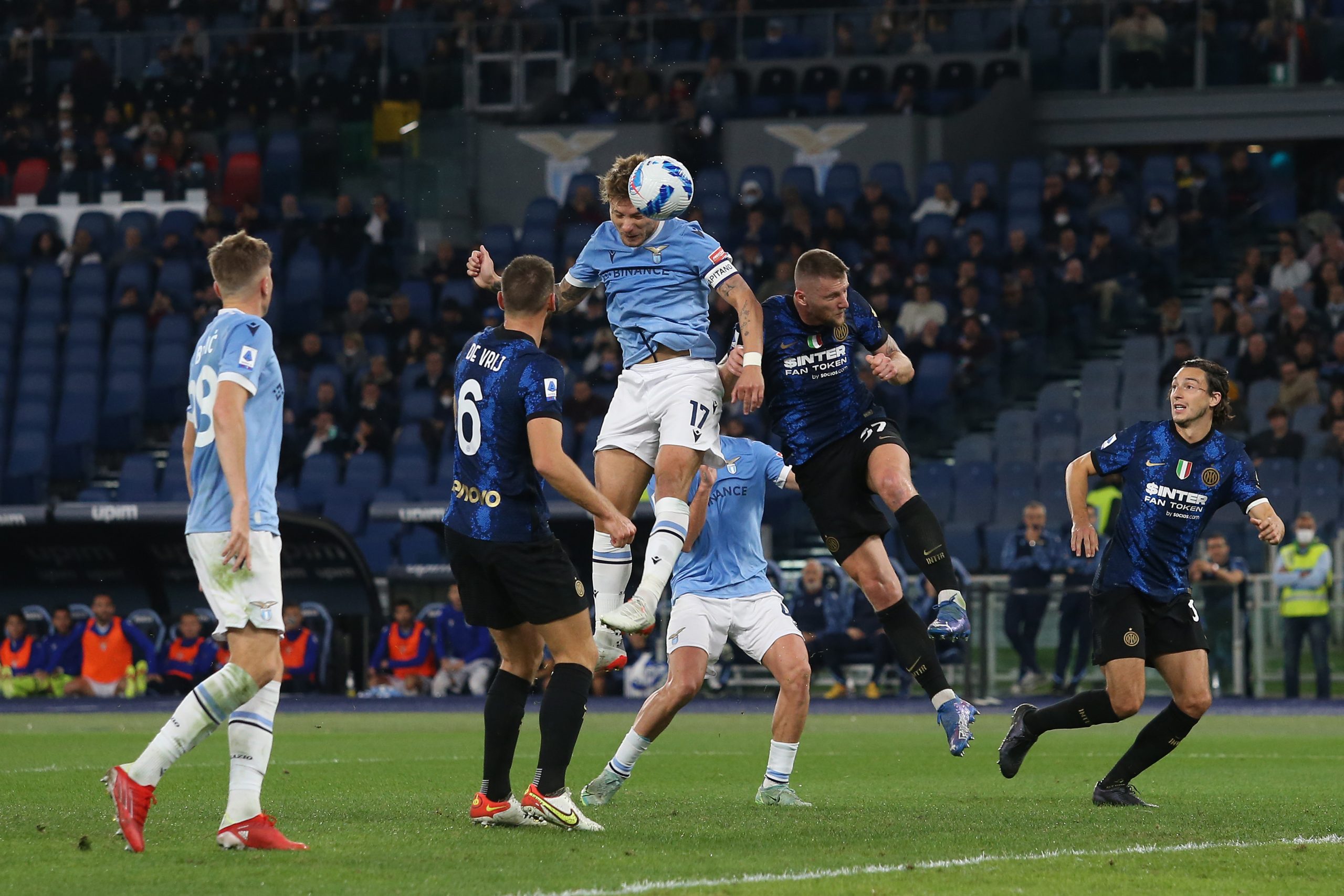 Durante la ripresa il copione non è cambiato molto, l'unica sostanziale differenza dei primi minuti è stata che l'Internazionale ha preferito chiudersi dietro e sperare nella ripartenza. Tattica che, però, non ha giovato ai campioni d'Italia. Proprio come nel primo tempo, a sbloccare il risultato ci ha pensato un altro calcio di rigore. Questa volta in favore dei biancocelesti. A causare il penalty è stato Alessandro Bastoni che ha toccato il pallone con la mano. Il penalty è stato trasformato da Ciro Immobile, la rete è valsa la sua 7^ marcatura complessiva in Serie A. Galvanizzata dall'1-1, dopo pochi minuti la Lazio è riuscita a trovare anche la marcatura del 2-1. A firmare il vantaggio capitolino ci ha pensato Felipe Anderson. In goal ai nerazzurri proprio come l'ultima volta prima di andare al West Ham. Rete che ha scaldato gli animi in campo ma che non è servita all'Inter per tornare in partita. Al punto che è arrivato anche il 3-1, firmato Sergej Milinkovic-Savic di testa. Perfetto l'assist da calcio di punizione di Luis Alberto. Alla fine, quelli conquistati dalla Lazio, sono stati tre punti d'oro.© RIPRODUZIONE RISERVATA