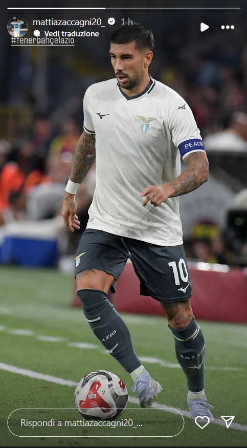 Un test che comunque è servito agli uomini del Comandante di mettere altro minutaggio nelle gambe in vista dell'inizio di Serie A. Intanto il capitano biancoceleste Mattia Zaccagni ci ha tenuto a pubblicare fra le proprie storie di Instagram uno scatto che lo vede condurre un'azione di gioco in un momento della partita. Di seguito la storia pubblicata dal capitano biancoceleste su Instagram.