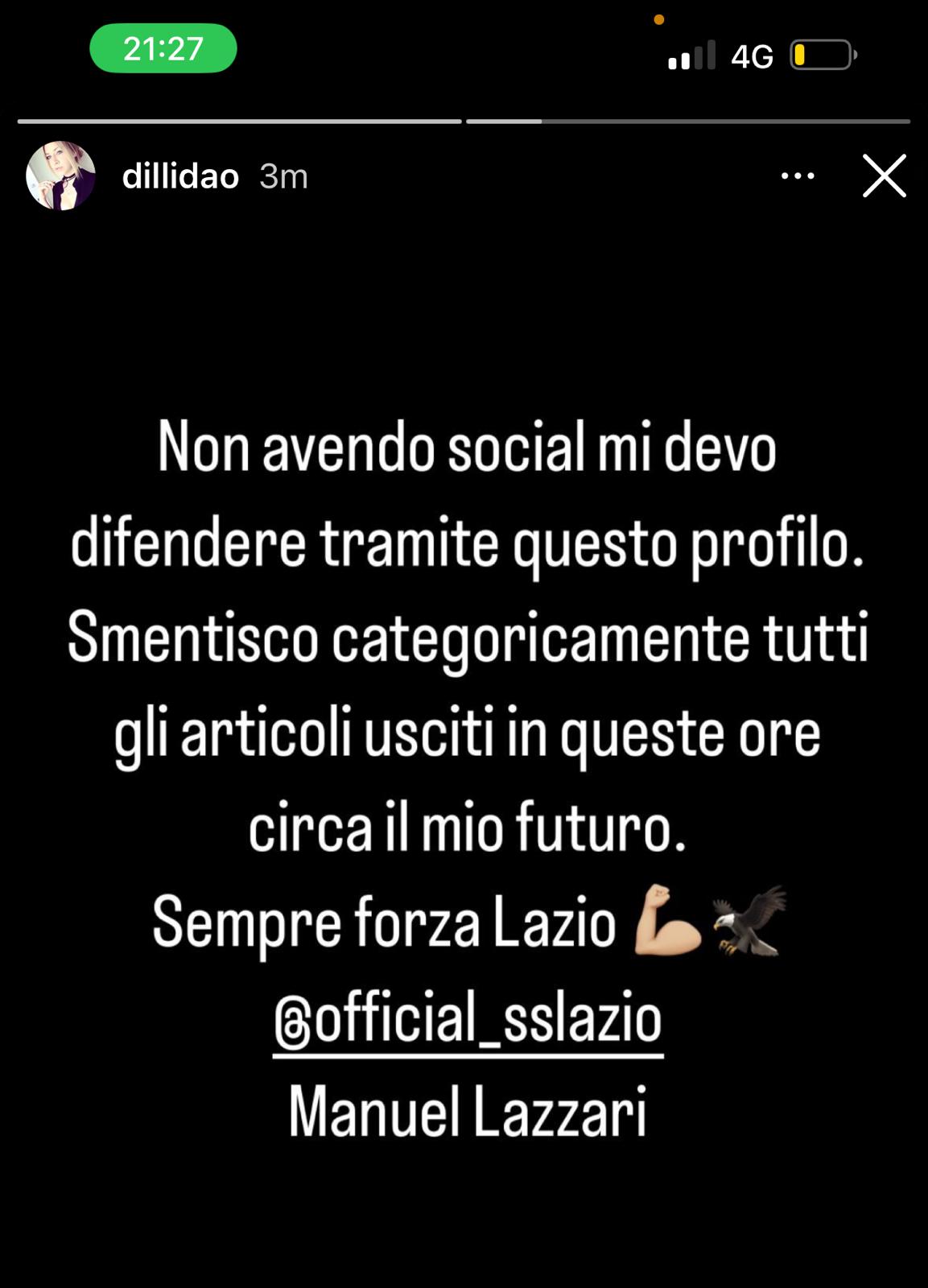 Il difensore biancoceleste, attraverso i profili social, smentisce le voci circa una sua presunta richiesta di esserecessione alla società
