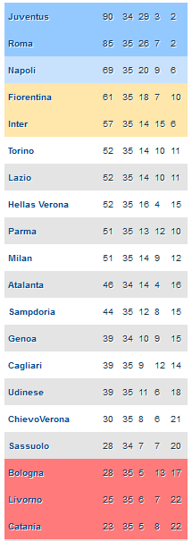 Questa la nuova classifica della Serie A: