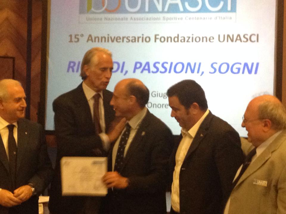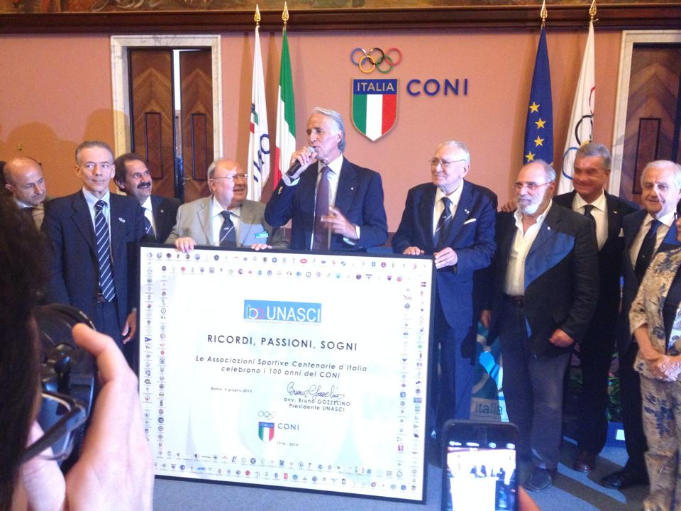 ROMA – Presso la Sala d'Onore del Coni va in scena il quindicesimo anniversario dell'UNASCI (unione nazionale associazioni sportive centenarie d'Italia), dove sarà premiata anche la S.S. Lazio, rappresentata dal suo presidente Antonio Buccioni e dal Presidente della Lazio Scacchi Paolo Lenzi e della Lazio Baseball Giuseppe Sesto. La consegna dei premi è avvenuta alla presenza del Presidente del Coni, Giovanni Malagò e del Segretario Generale, Roberto Fabbricini.