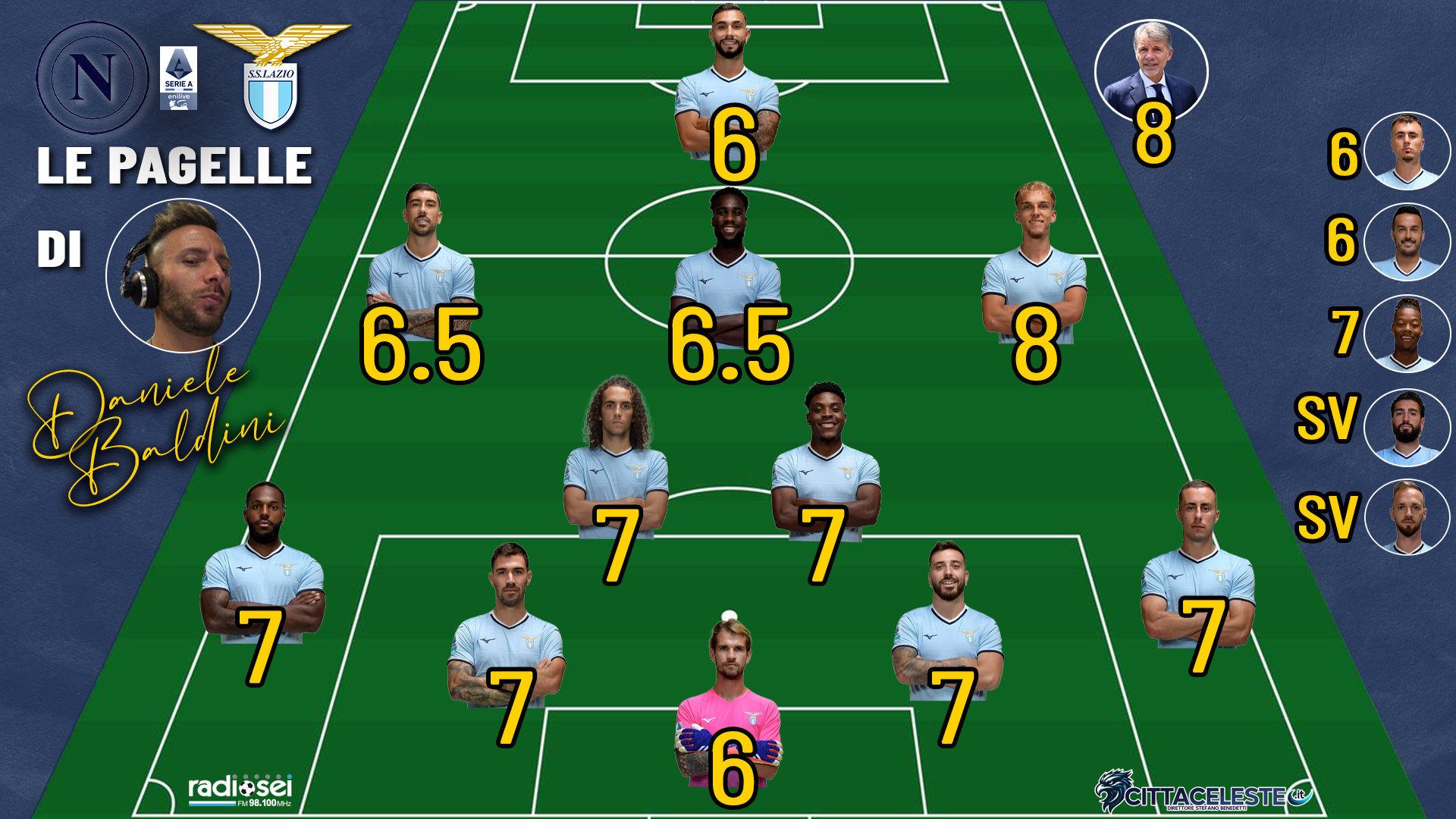 Conduttori e opinionisti di Radiosei danno i loro voti dopo la partita tra i biancocelesti e i partenopei: ecco a chi va la pagella migliore