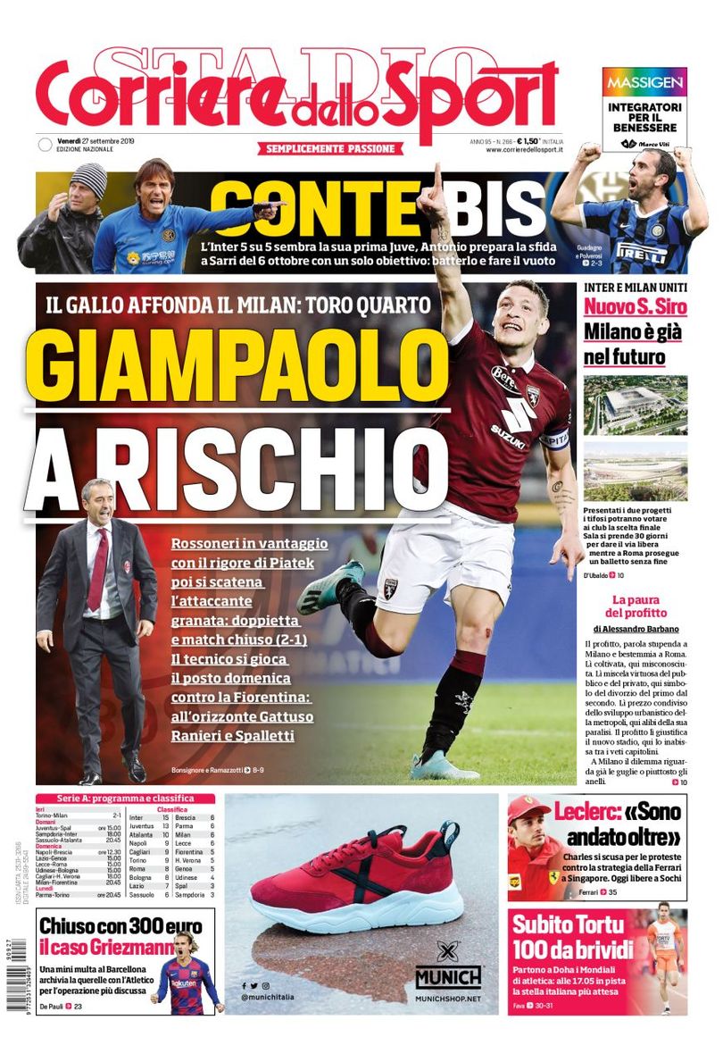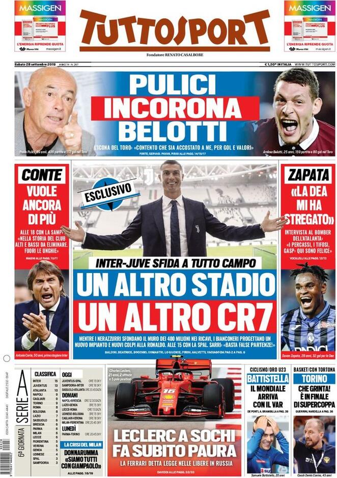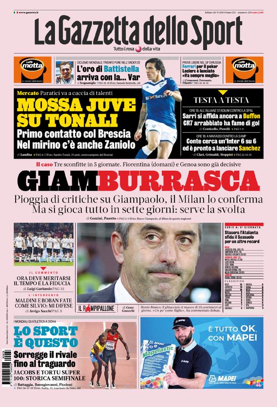 ROMA - Ecco le prime pagine dei principali quotidiani sportivi italiani.