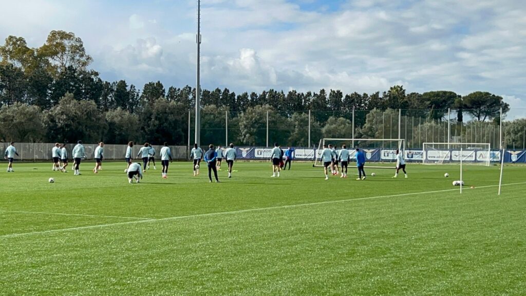 Le immagini dal centro sportivo biancoceleste con la squadra che ha iniziato da poco la seduta di allenamento della vigilia: le immagini