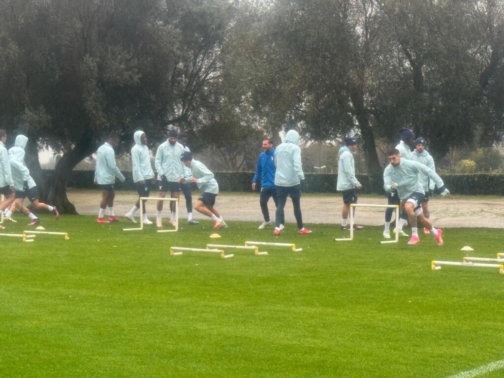 La squadra di mister Baroni ha cominciato il riscaldamento prima della seduta di rifinitura in vista del Viktoria Plzen