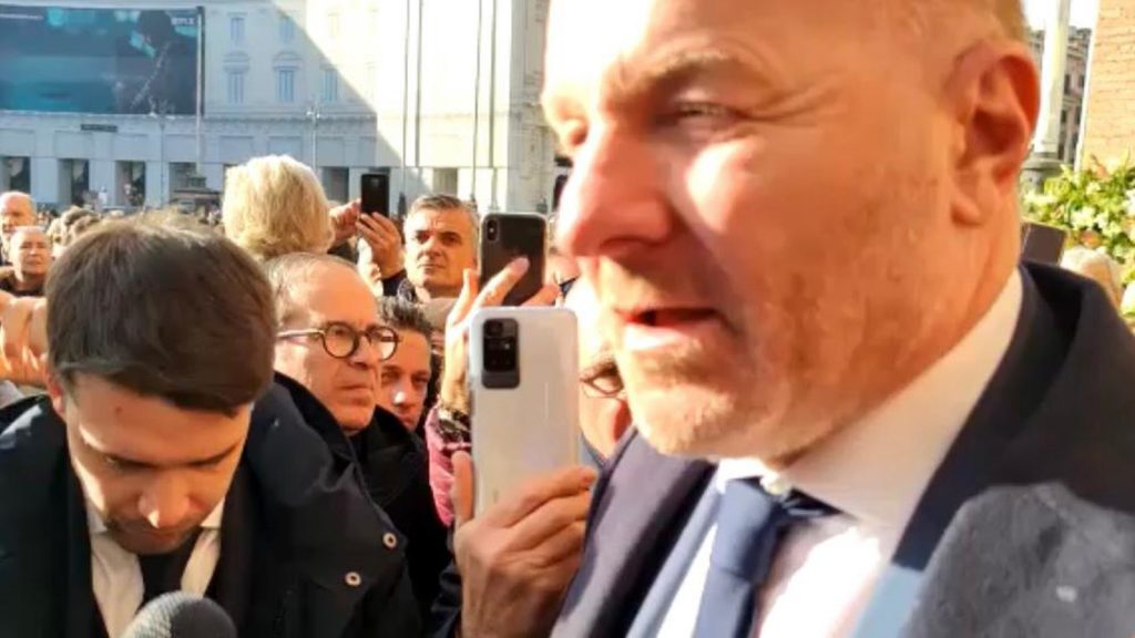 Le parole e il ricordo di Igli Tare al funerale di Sinisa Mihajlovic fuori dalla basilica di Santa Maria degli Angeli e Dei Martiri